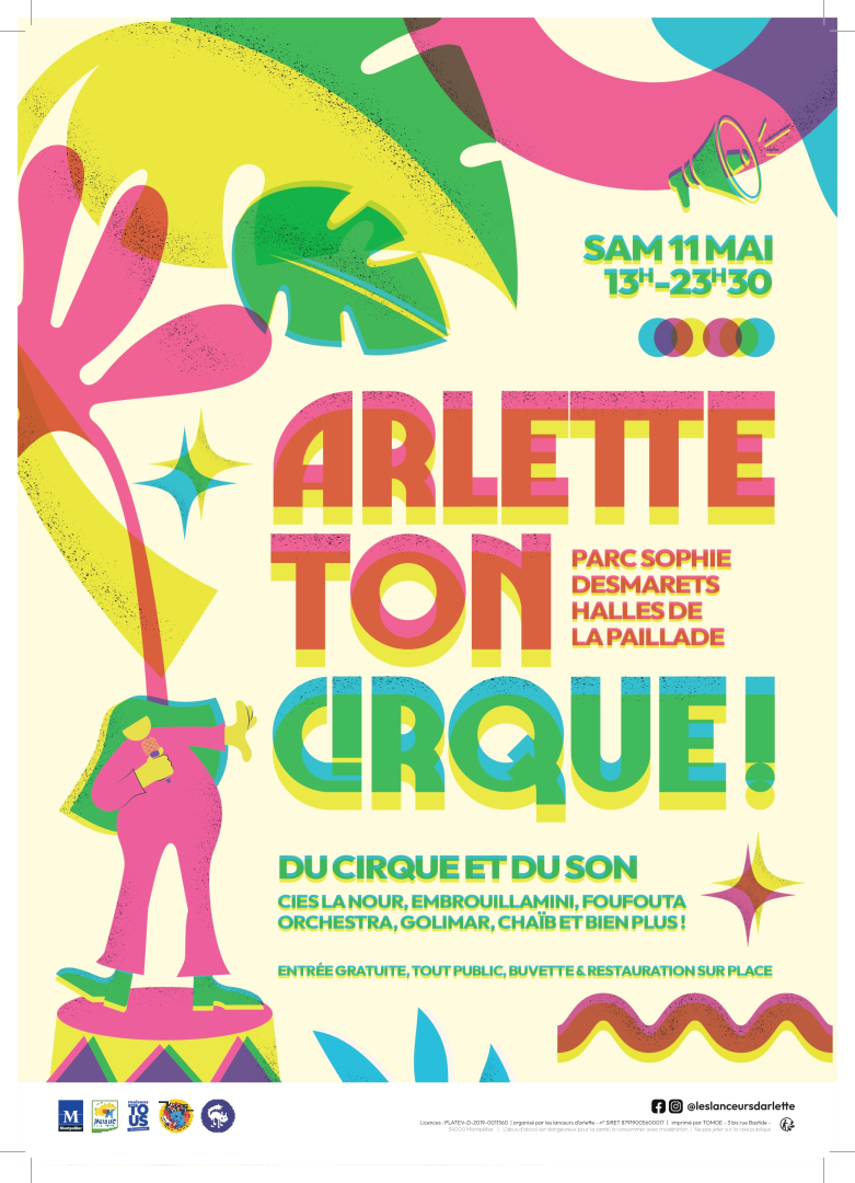 Notre association, Les Lanceurs d’Arlette a créé de toutes pièces son festival “Arlette ton Cirque !”, un rendez-vous annuel et fédérateur au cœur de Montpellier, souhaité accessible à toutes et à tous. Nous avons ainsi à cœur de faire découvrir les arts du cirque au plus grand nombre, gratuitement, au cours d’une après-midi et d’une soirée printanières et festives.
