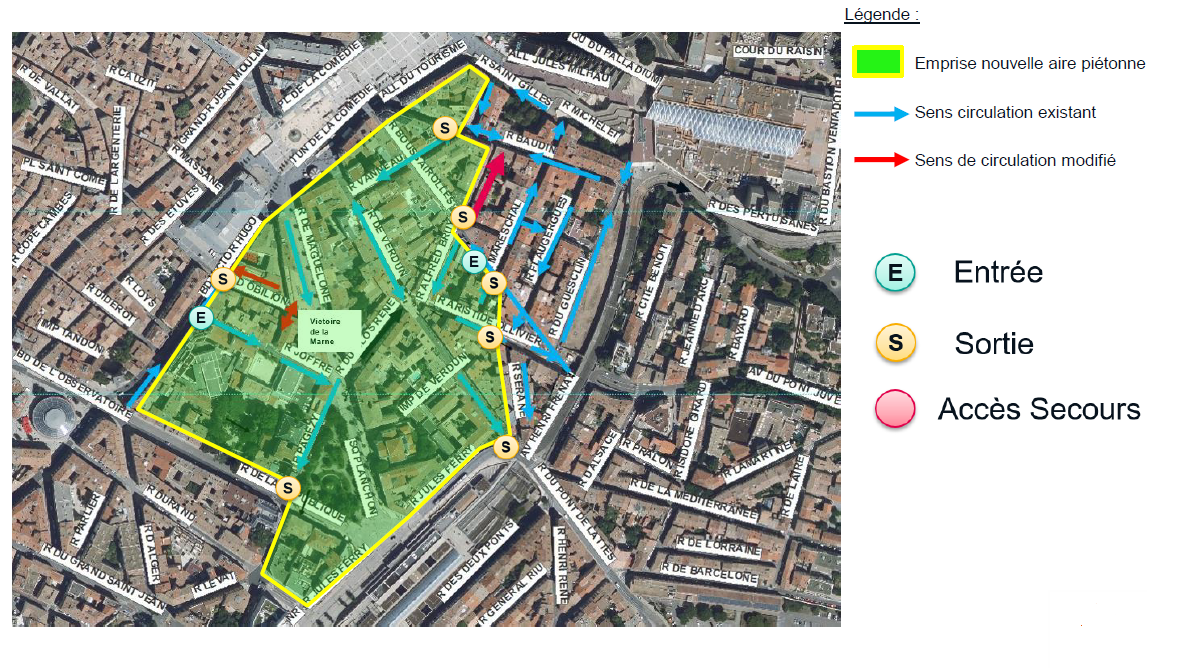En cohérence avec cette stratégie globale, l’extension de l’aire piétonne sur le secteur Sud Comédie va permettre de relier le centre historique aux quartiers Carnot et Méditerranée qui font l’objet par ailleurs d’un plan d’actions d’embellissement des espaces publics dans le cadre de la démarche « quartiers apaisés ».