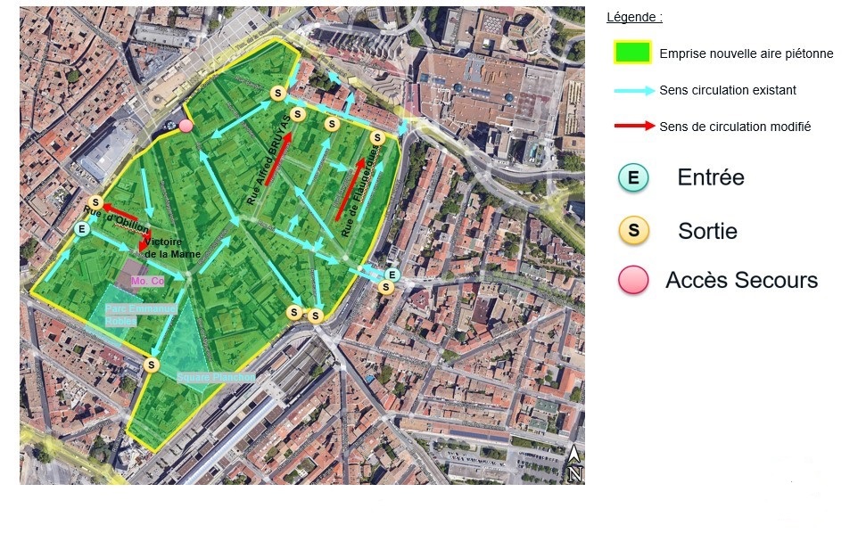 A l’échelle du secteur Sud Comédie, cette extension de l’aire piétonne vise un apaisement de la circulation et un reconquête progressive des espaces publics au bénéfice des piétons et de la vie locale. A terme, ce secteur pourra bénéficier d’aménagements paysagers qualitatifs de nature à embellir les rues et à mettre en valeur un patrimoine urbain et architectural remarquable.
