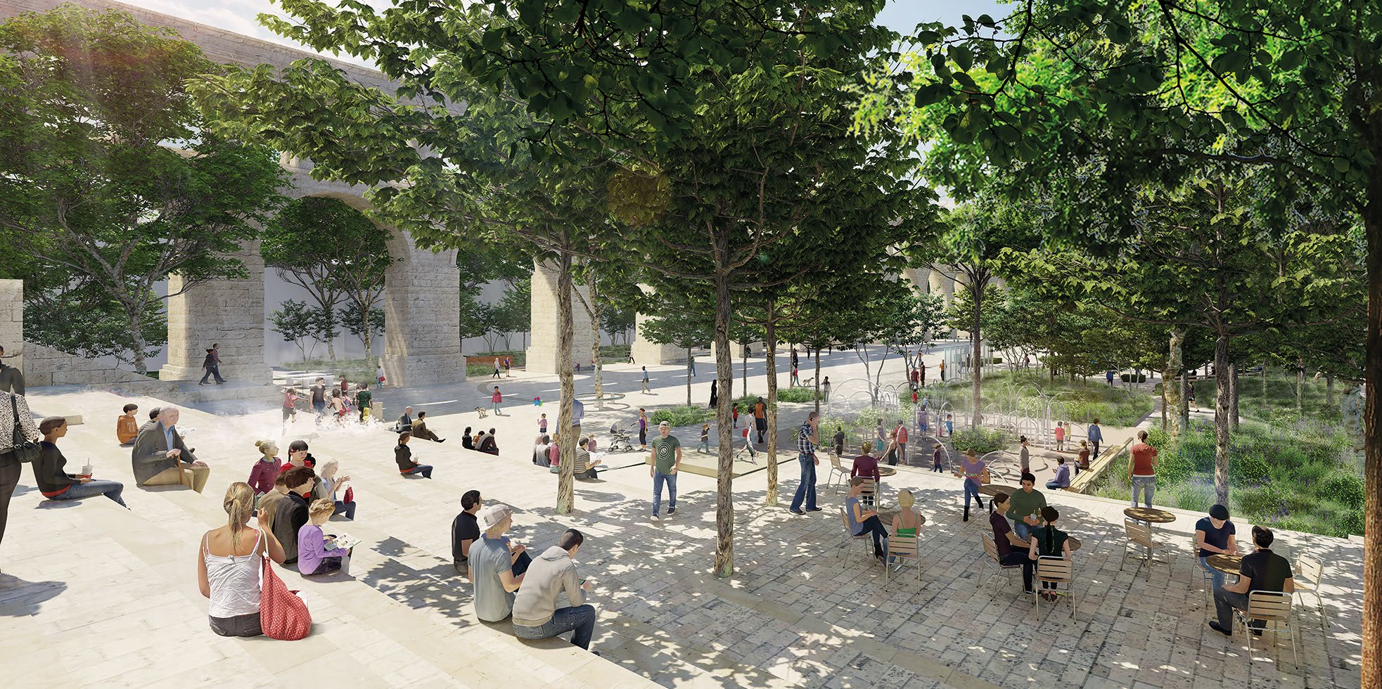• mettre en scène la présence de l’eau, en rapport avec l’aqueduc