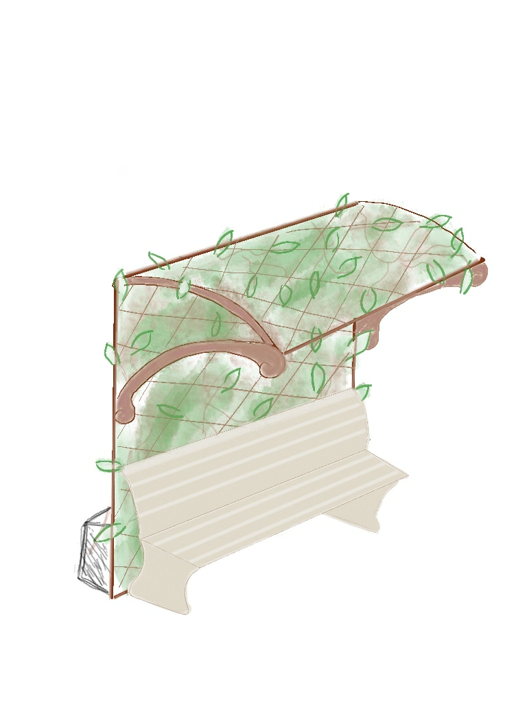 Je trouve qu'il serait intéressant de faire un couloir ombragé avec des plantes grimpantes et des bancs.