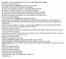 tout nouveau sur Montpellier , je viens de notre belle Guyane ou j'ai vécu 11 ans . la bas la végétation est omniprésente et vous enveloppe de son manteau bienveillant . Ce qu' il faudrait pour la place de la comédie , c'est un genre de poumon vert , je verrais bien comme dans le centre de Cayenne , une plantation de palmiers , mais surtout pas du moderne qui va dénaturer cette place qui est classique et doit le rester