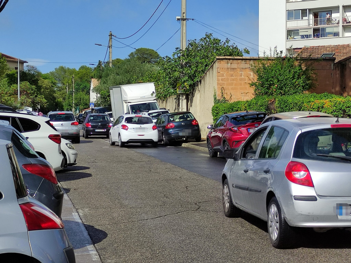 En gros je ne peux pas braquer pour rentrer en marche arrière quand une voiture est garée. Cela fait des années que je réclame une solution et je n'en ai toujours pas. J'ai fini par stationner pour 150 € par an, et puis maintenant je me dis que ce n'est pas juste et je me gare à la sauvage dans le quartier. Il faudrait vraiment interdire cette rue au stationnement pour que les gens puissent sortir de leur garage. Je suis dépitée depuis 10 ans...
