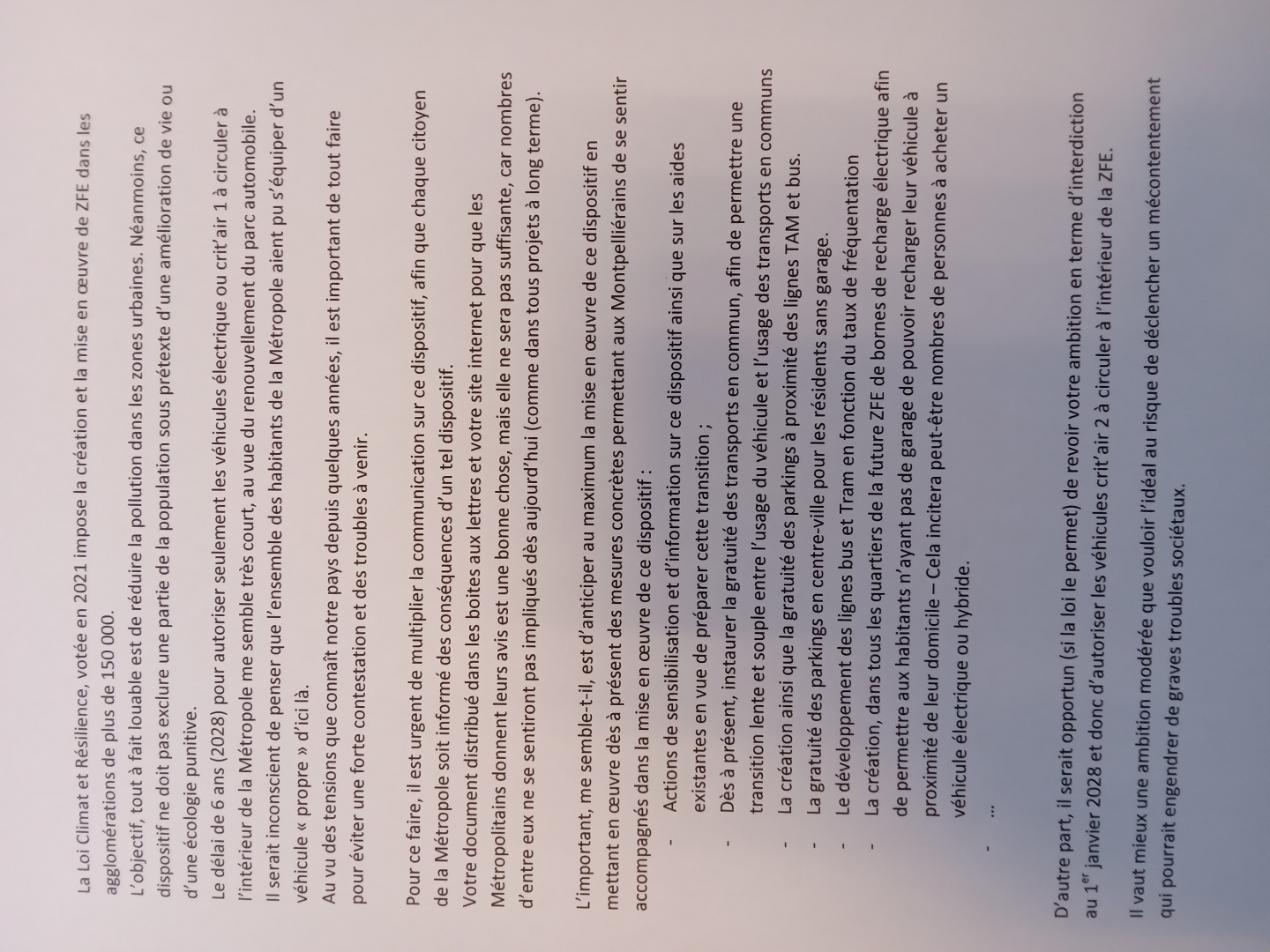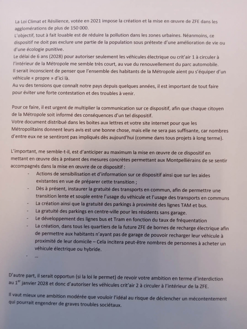 Le projet de la métropole est intéressant, d'autant qu'il s'applique à terme à toute la métropole. Cependant il n'indique pas les moyens de contrôle du respect des règles de la ZFE .